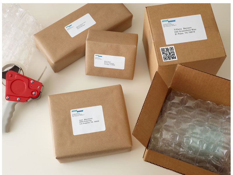 Firma logo ve isminin basıldığı sevkiyat etiketleri, f